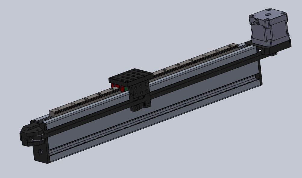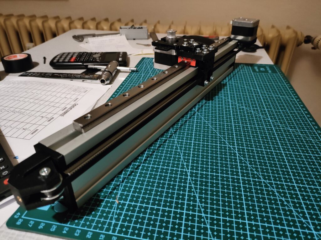 Pro osu X jsem zvolil jako hlavní konstrukční prvek hliníkový profil 30×60 o délce 400mm a pro přesnost použiju přesné lineární vedení MGN12. Jako pohon použiji krokový motor Nema 17 s ozubeným řemenem GT2. Hlavní konstrukční díly budou z 3D tiskárny a to z materiálu PLA.